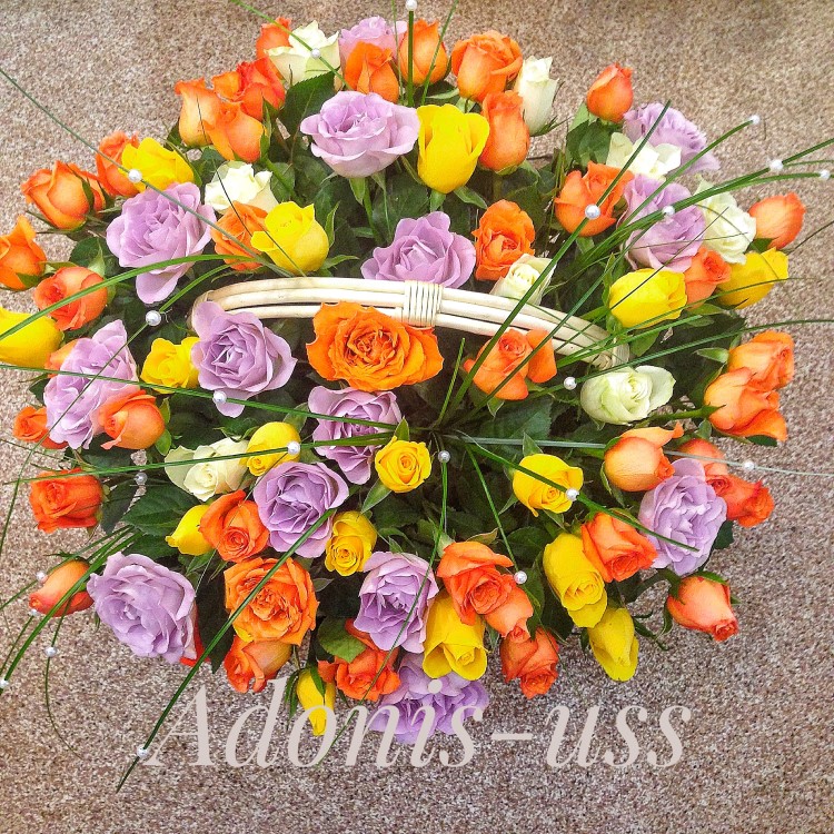 Роза 42 см 101 шт • Берграс • Декор - бусины • Корзина • Оазис